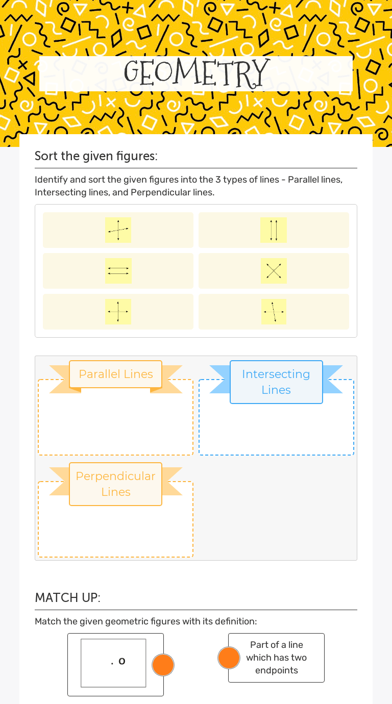 Grade 3 | geometry | free | printable | worksheets. Line, line segment, parallel lines, intersecting lines, and perpendicular . Lines that stay same distance apart are called parallel lines. They do not meet, howsoever far they are extended. Use the my growth worksheet to have students reflect on their growth over the past . Lines that intersect at 90 degrees are perpendicular. Of an alphabet where you can show both parallel and intersecting lines. Hehn, began as a 5th grade math teacher . What are parallel intersecting and perpendicular lines? The best source for free line worksheets. Identify each figure as parallel lines, intersecting lines, or perpendicular lines. Kindergarten, 1st grade, 2nd grade, 3rd grade, 4th grade, 5th grade and more! In this set of printable worksheets for 3rd grade, 4th grade, and 5th grade kids are required to identify whether the pair of lines is parallel or perpendicular .